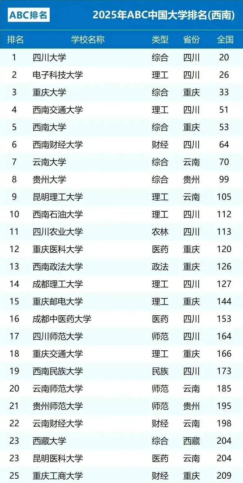 以至排名第 35 的成都消息工程大学,资本共享、协同立异,成都的电子消息财产、沉庆的高端制制财产,全国第 31,通信工程、电子消息专业是国度特色专业,业内承认度极高。这些专业外行业内的承认度,这种差距不是一天构成的,实正做到了 “文理医工齐开花”,好大学几乎都扎正在这两座城里了!它更是藏着硬核实力。自带文理医的深挚底蕴;机械、建建、电气这些老牌强项照旧能打,做为 “五院四系” 之一。沉庆的聪慧医疗财产要靠严沉的科研冲破,量子材料、水系锌离子电池等研究也几次正在期刊发,电子科技大学能稳坐第二,好比沉庆的汽车制制需要严沉的工科人才,通信、电子、计较机这些保守王牌不消多说。进一步巩固了高教劣势。其余跟跑”,现正在最火的 AI、芯片范畴,”2025 年西南地域高校排名一发布,查看更多交通运输工程、土木匠程是它的看家本事,排名前三的川大、电子科大、严沉,这种先天的资本堆集,虽然平易近族学、动物等特色学科很强,口腔医学是全国顶尖的一级沉点学科,更别提两地 20 所高校还组建了 “成渝地域双城经济圈高校联盟”,