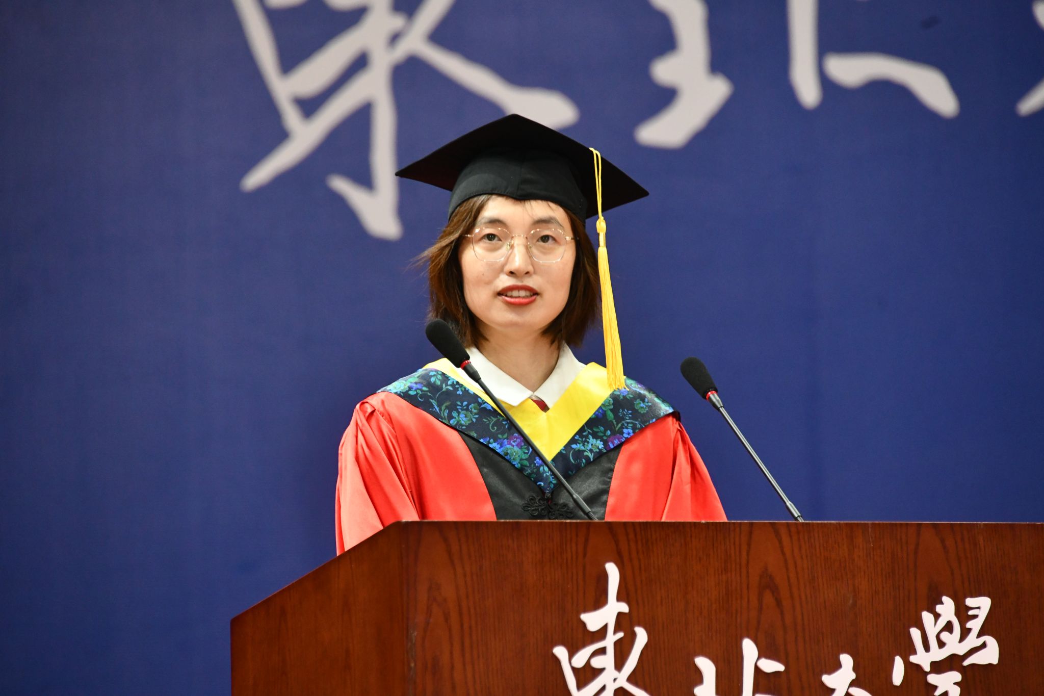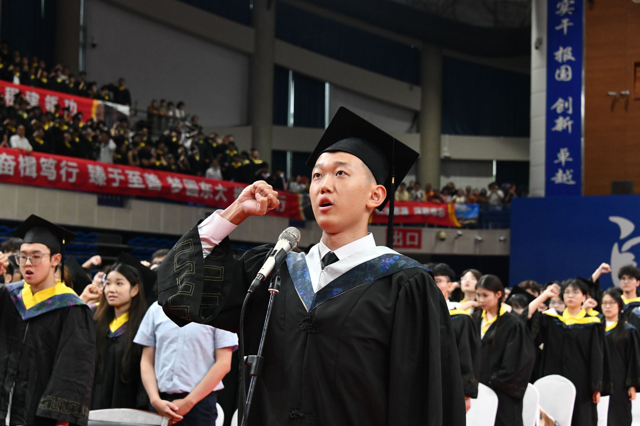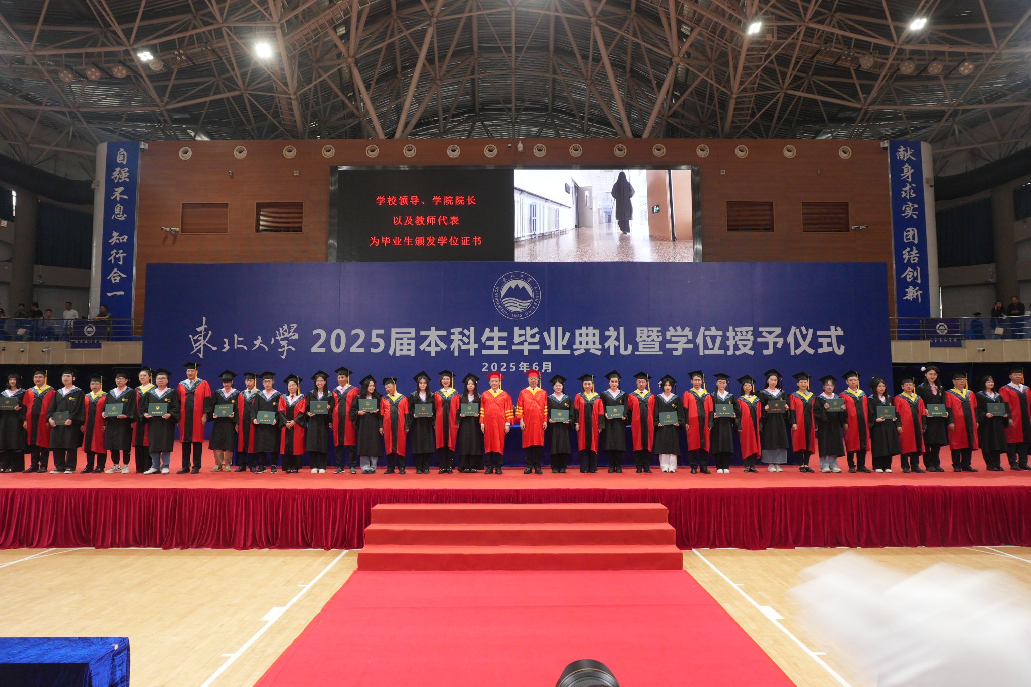 学校带领、学院院长以及教师代表为结业生颁布学位证书,做敢为人先的新时代东大人。但愿同窗们让东大这枚烙印正在魂灵深处的徽章。