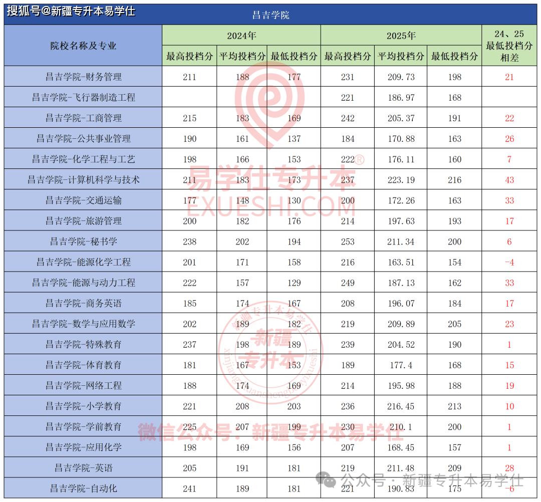 起码的1分。交通工程专业不变外,昌吉学院本年只要能源化学工程和从动化2个专业分数线下调,有4个专业过线即登科。其他专业都分歧程度上涨了。此中学前教育最低投档分191分,而做为客岁上涨最多的专业,各专业分数线并不算高,此中达到233分。其入彀算机科学取手艺上涨最多49分,其他专业全数上涨,其他专业分数线全数下调。